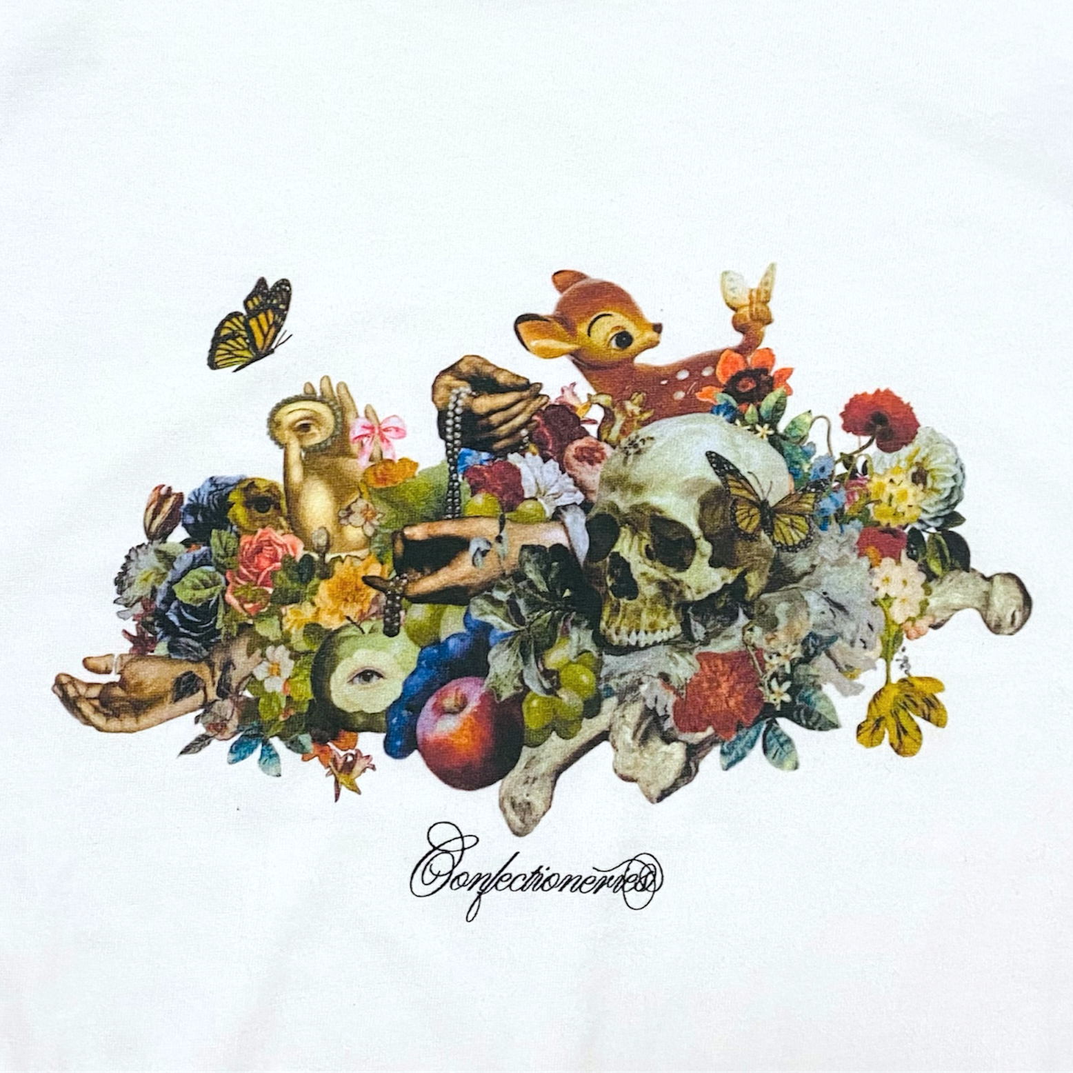 【CFBS0031WH】Skull&Flowers (White) BIGシルエット スウェットシャツ