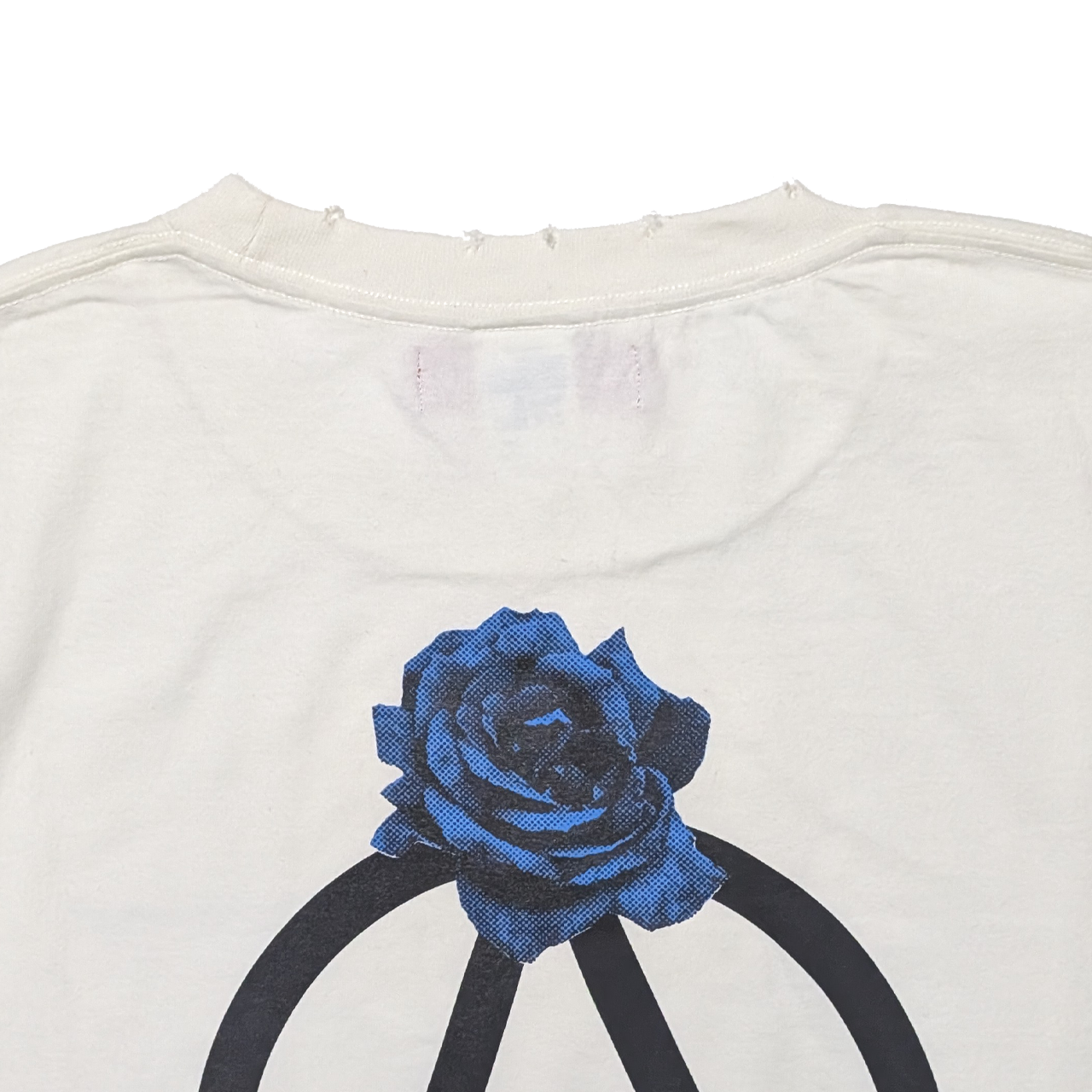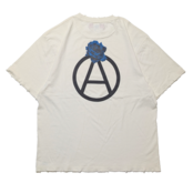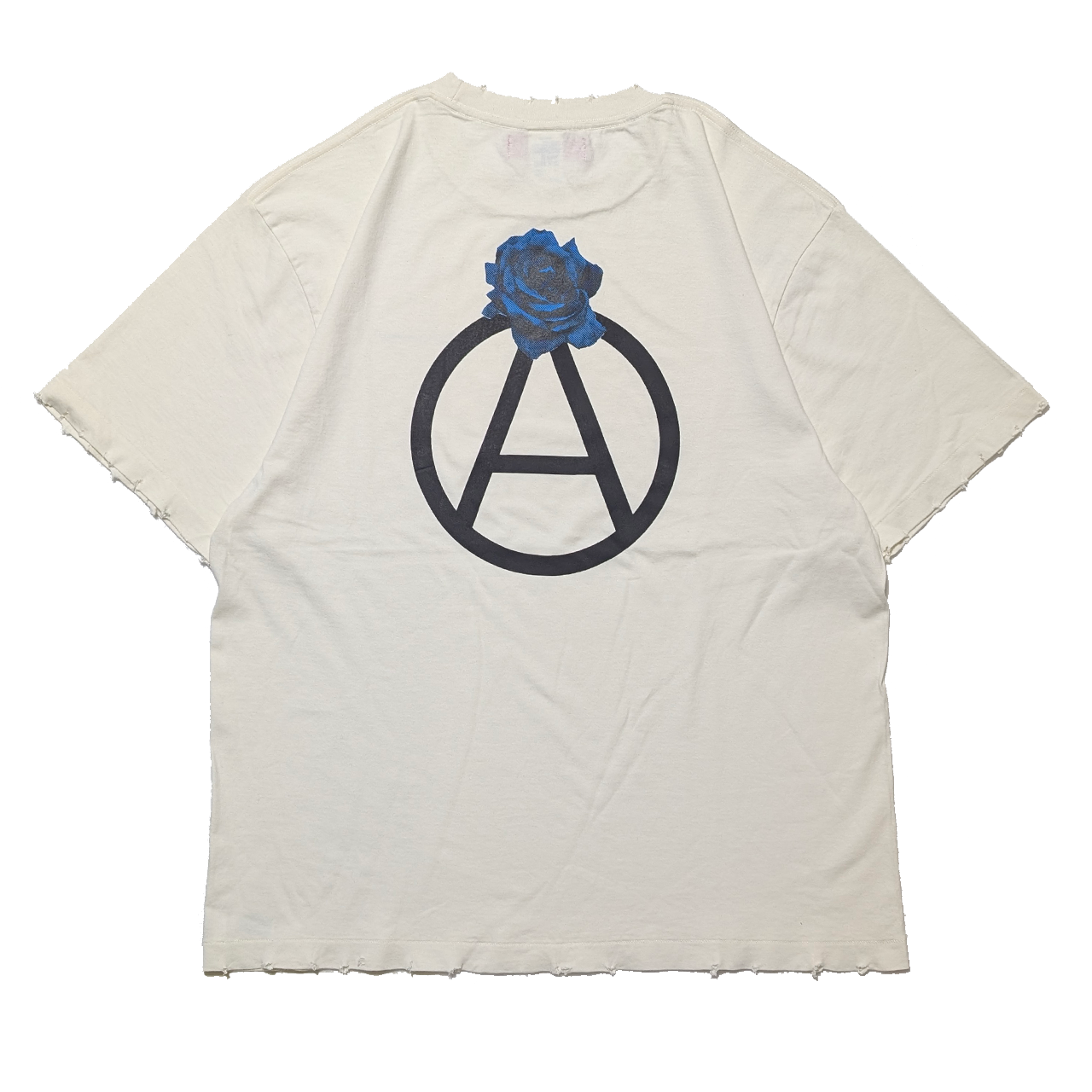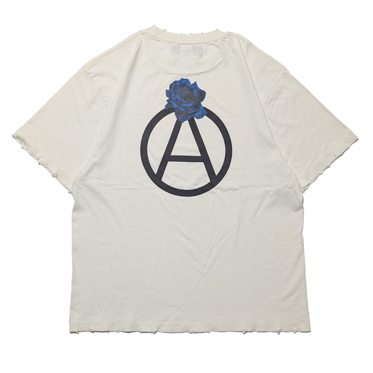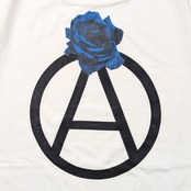 着古したような色と風合いに加工されたボディーを使い、サークルAに薔薇を添えたグラフィックをバックにプリントしました。